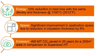 Superwool Prime, a patented 1300°C (2370°F) AES Low Biopersistent Fibre that delivers energy savings, improved application efficiency, and reduced emissions.